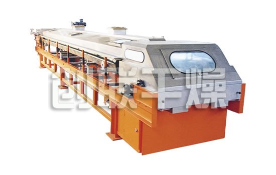 該機主要由落料模造粒成型機頭,冷卻輸送不銹鋼帶及帶輪、噴淋冷卻系統、傳動系統、保溫裝置、機架、刮刀等組成。落料模造粒機頭主要由機頭模套和機頭芯軸等組成。噴淋冷卻系統主要由噴頭、盛水池等組成。傳動系統主要由減速箱(減速器)調速電機等組成。