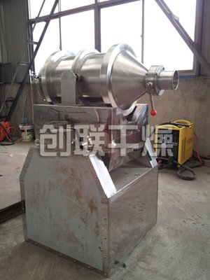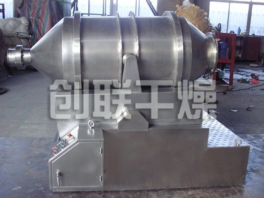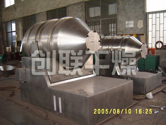 EYH二維混料機的轉筒可同時進行二個運動,一個為轉筒的轉動,另一個為轉筒隨擺動架的擺動。被混合物料在轉筒內隨轉筒轉動、翻轉、混合的同時,又隨轉筒的擺動而發生左右來回的摻混運動,在這兩個運動的共同作用下,物料在短時間內得到充分的混合。EYH二維混料機適合所有粉、粒狀物料的混合。