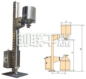 TJG 系列固定提升加料機(jī)由兩部分組成,即提升機(jī)及底座。提升機(jī)由機(jī)架、液壓提升系統(tǒng)及料門(mén)翻轉(zhuǎn)機(jī)構(gòu)組成。工作時(shí),先將提升機(jī)的料門(mén)與料桶扣合,啟動(dòng)提升操作桿,料門(mén)與料桶一起上升,啟動(dòng)翻轉(zhuǎn)操作桿,料桶即可番轉(zhuǎn)180度,呈底桶向上姿態(tài)并移動(dòng)到所需位置,利用料門(mén)上出料蝶閥,可很容易將物料加入所需的工藝設(shè)備中。